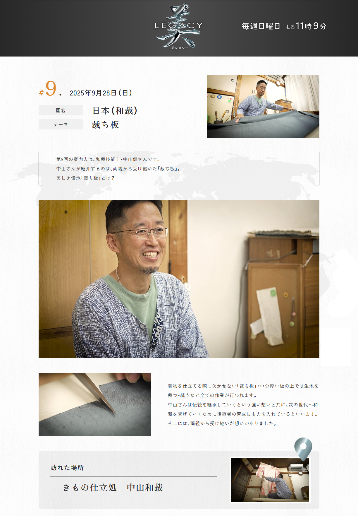 テレビ朝日「美レガシー」にて、親から子へ受け継ぐ和裁の裁ち板について取材を受け、9/28にオンエアされました。